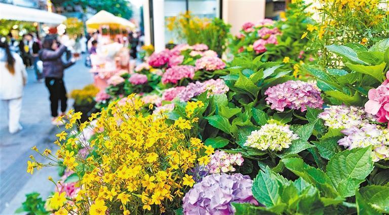 1月11日拍摄的北京路步行街南段“花城花街”花卉产业展销区。